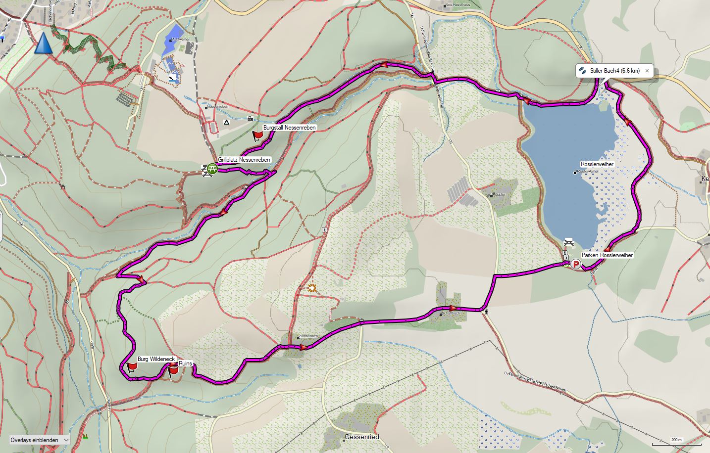 Am 24.01.24 trafen sich am Parkplatz der Badestelle am Rössler Weiher 17 Wanderer um zur Tour aufzubrechen. Zuerst ging es in östlicher Richtung um den Rössler Weiher und weiter entlang des Stillen Baches zur Picknickstelle Nessenreben. Von hier ging es nun bergab bis zum Bach und dann an diesem Richtung Westen Richtung Lauratalstrasse. Kurz vor der Lauratalstrasse ging es in Richtung Süden wieder bergauf und danach in Richtung Osten bergauf nach Zundelbach. Über Schattbuch ging es zurück zum Parkplatz.