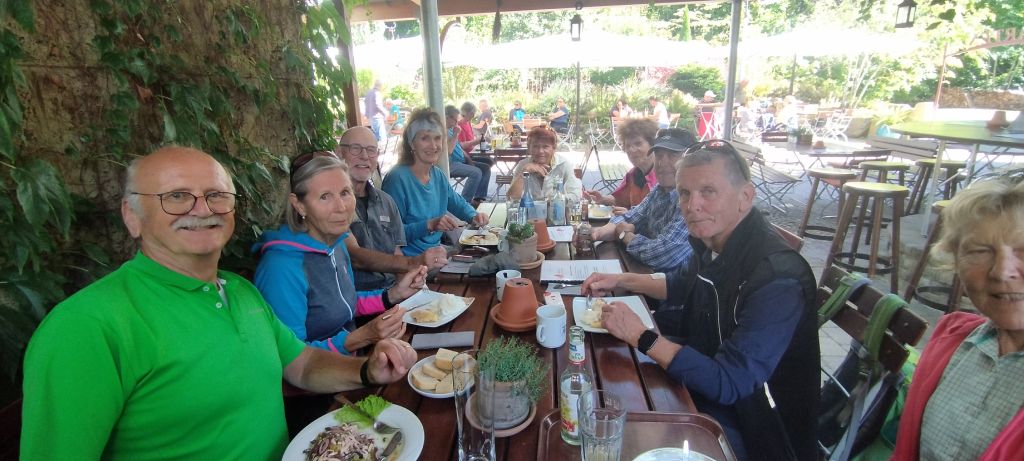 Der Rückweg führte uns auf der Albhöhe, vorbei an einem riesigen Steinbruch wieder zurück zum Schloß Lichtenstein. Im dortigen Forstgarten waren wir dann zu Gast und erfreuten uns an den leckeren Speisen.