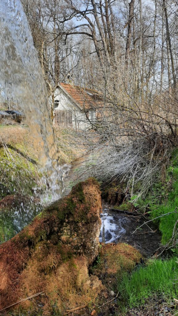Der Besitzer der Mühle informierte uns über das Alter der 4 Mühlsteine, ihre Funktionsweise und Gerätschaften, die für den Betrieb nötig sind. Ebenso über den Antrieb über das große Wasserrad. Dieses große Rad interessierte natürlich viele. Auch woher das Wasser herkommt für einen gelegentlichen Betrieb der Mühle. Viele Wasserläufe um die Mühle herum entspringen im naheliegenden Wald und werden teilweise in Weiher zwischen gespeichert.