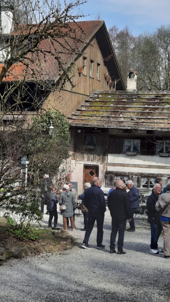 Die Zeit bis zum Mittagessen benutzen unsere Reiseteilnehmer, das nahe Umfeld der Mühle zu erkunden und sich an den Frühlingsblumen zu erfreuen. Das vorausgewählte Mittagessen wurde uns flott serviert und hat allen vorzüglich gemundet.