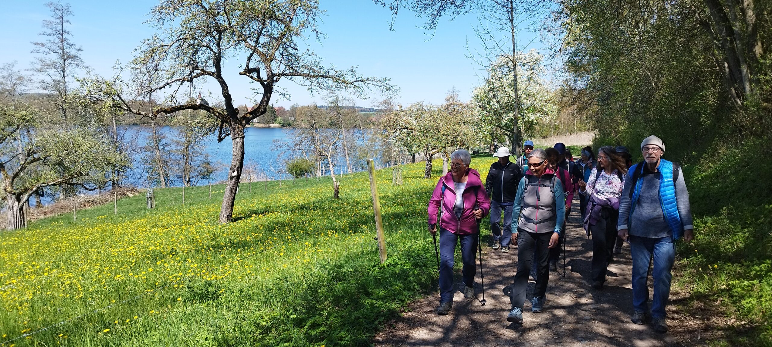Für die erste Wanderung in diesem Jahr haben wir uns als Startort Illmensee ausgesucht. Bei wunderschönem Wetter und angenehmen Temperaturen war der Höchsten das Ziel. Wir Weg verlief anfangs entlang des Illmensees und setzte sich fort in einem schönen Tal, bevor es für die 13 Wanderinnen und Wanderer leicht hinauf nach Glashütten ging und weiter bis zum Aussichtspunkz auf dem Höchsten. Das Bergpanorama konnten wir einigermaßen erkennen, es war für eine bessere Sicht leider etwas diesig.